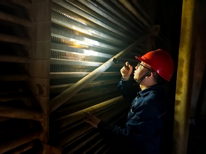 楊學毅進行低溫省煤器沖洗后驗收(鄂州發(fā)電公司供稿)